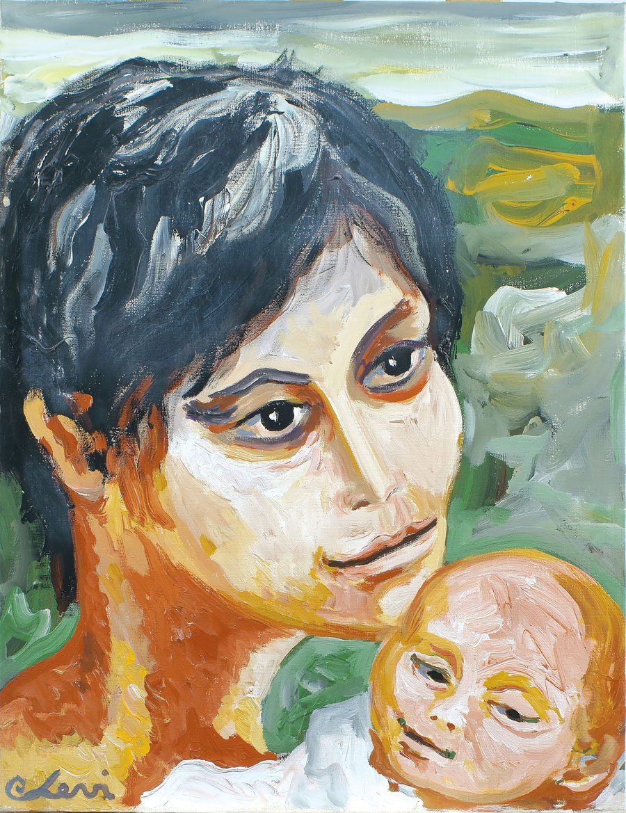CARLO LEVI Torino 1902 - Roma 1975 "Maternità", olio su tela, anno 1966, firmato in basso a sinistra, sul retro firma, data e numero 66827C 134, entro cornice CARLO LEVI Turin 1902 - Rome 1975 "Maternity", oil on canvas, signed and dated 1966 (lower left and on the reverse), date and number 66827C 134, framed 65x50 cm.