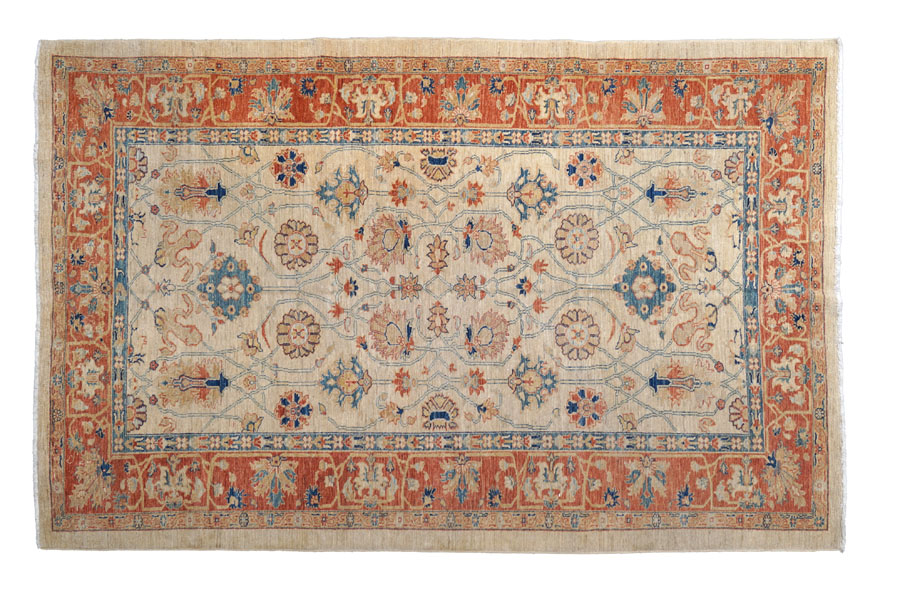 TAPPETO HERATI Afghanistan, XX Sec. disegno floreale a motivi Herati a tutto campo su fondo chiaro, bordura a disegno vegetale a tinte naturali A HERATI CARPET Afghanistan, 20th century Decorated with herbal colors 292x196 cm.