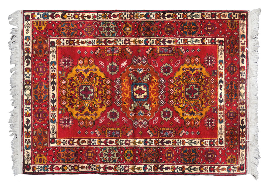 TAPPETO SHIRVAN MICRA Azerbaijan, XX Sec. disegno a motivi floreali stilizzati su fondo rosso mattone, ordito in cotone, trama e vello in lana A SHIRVAN MICRA RUG Azerbaijan, 20th century Cotton foundation with wool pile 142x108 cm.