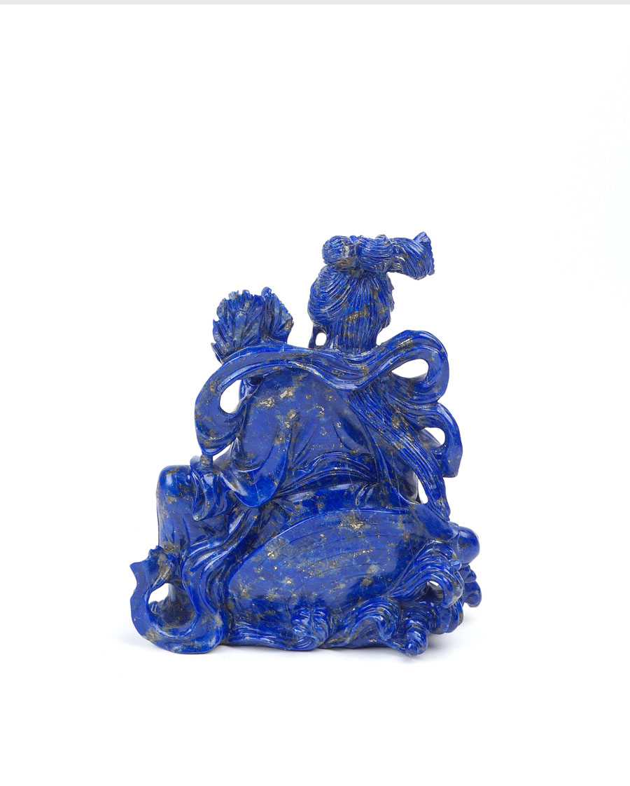 SCULTURA IN LAPISLAZZULO Cina, XIX Sec. raffigurante una Geisha A CHINESE LAPIS LAZULI SCULPTURE 19th century Modelled as a Geisha 13x11x4 cm.