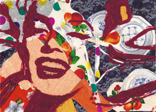 ANTONIO MURGIA Sarroch (Ca) 12/03/1956 Mary di pezza velluto su stoffa e carta su tavola cm. 50x70, titolo e firma al retro, dichiarazione d'autenticità dell'artista su foto.