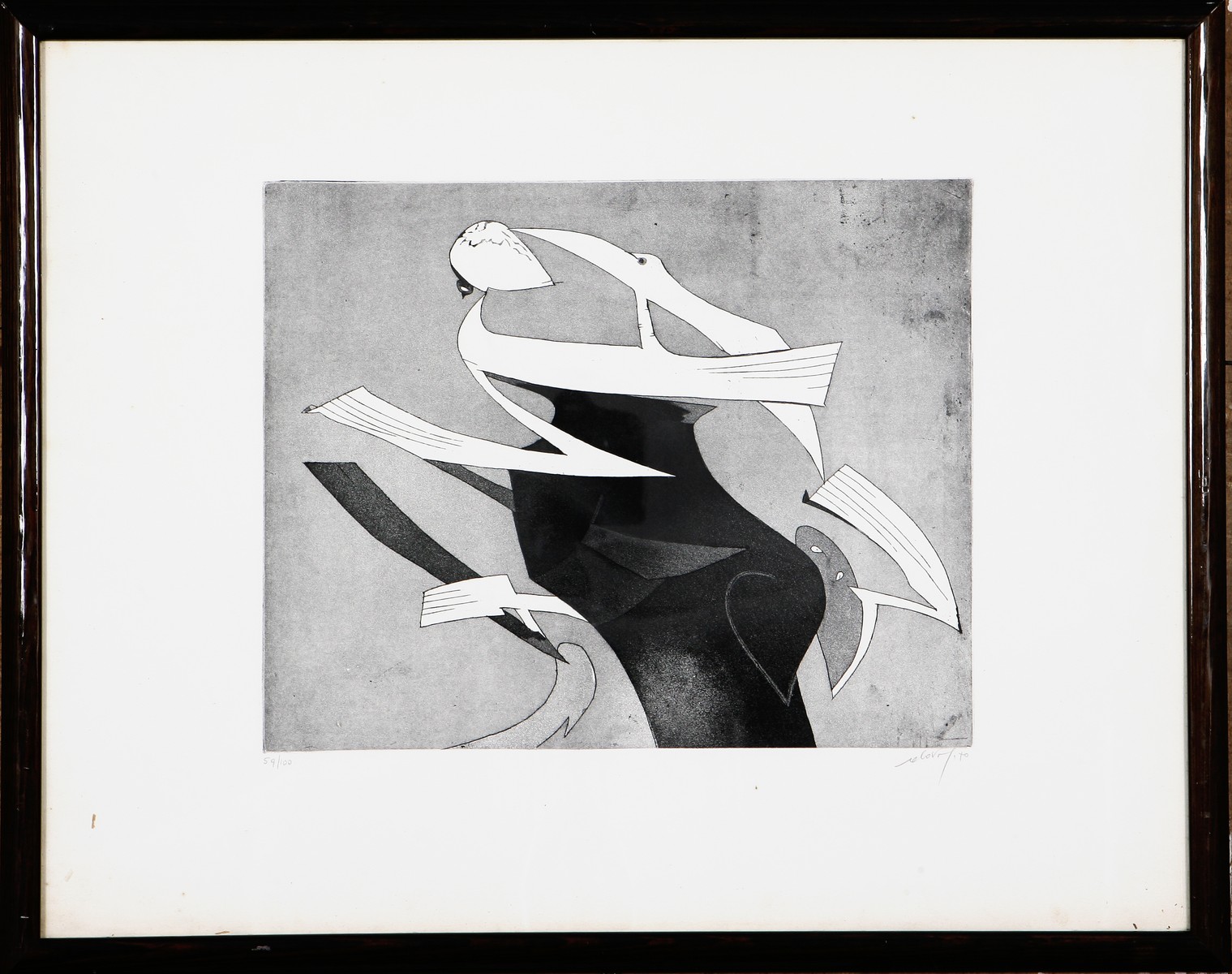 Tiratura: 59/100. Misure disegno: Cm 31x39 Firma, tiratira e data in basso a matita. Cornice presente.