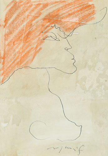 FRANCO ROGNONI Milano 20/09/1913 - Milano 11/03/1999 Figura tecnica mista su carta intelata cm. 29,5x21, firma in basso al centro, dichiarazione d'autenticità dell'artista su foto.