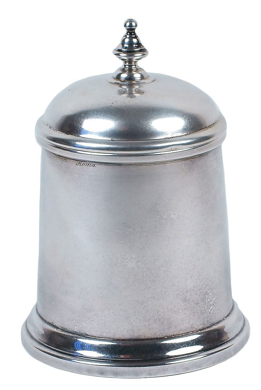 Lot 217 | SCATOLA CON COPERCHIO IN ARGENTO Italia, XX Sec. a corpo liscio, h. cm. 14 AN...