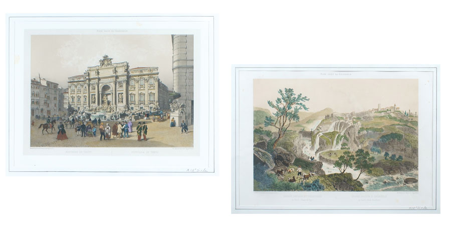 COPPIA DI STAMPE ENTRO CORNICI inizio XX Sec. raffiguranti "La Fontana di Trevi e le Cascate di Tivoli", lievi difetti A LOT OF TWO PRINTS 20th century respectively with scenes of Rome, framed, minor defects 30x42 cm.