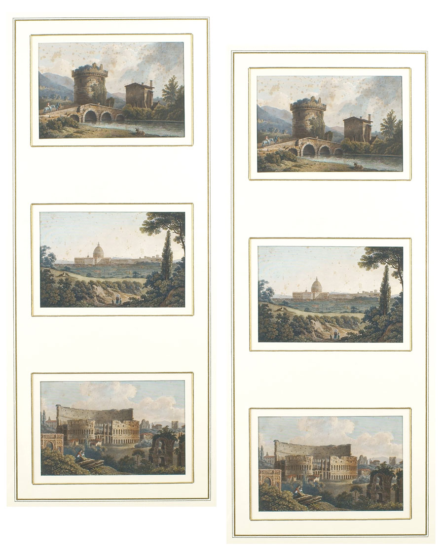 SEI STAMPE ENTRO CORNICI inizio XX Sec. raffiguranti diverse vedute di Roma, lievi difetti A LOT OF SIX PRINTS (6) 20th century views of Rome, minor defects 11x18 cm.