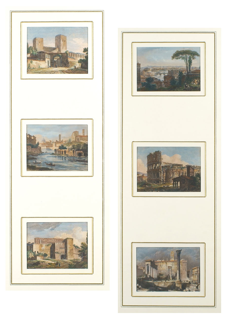 SEI STAMPE ENTRO CORNICI inizio XX Sec. raffiguranti diverse vedute di Roma, lievi difetti A LOT OF SIX PRINTS (6) 20th century view of Rome, minor defects 10x13 cm.