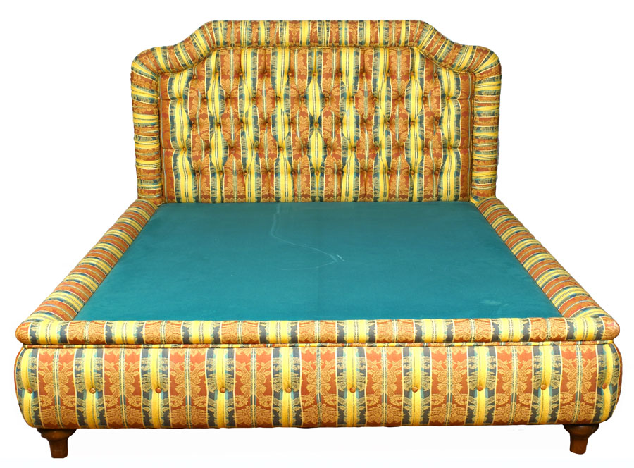 LETTO RIVESTITO IN TESSUTO manifattura recente composto da sommier e testata A FABRIC COVERED BED current manufacture comprising sommier and headboard 135x210x185 cm.