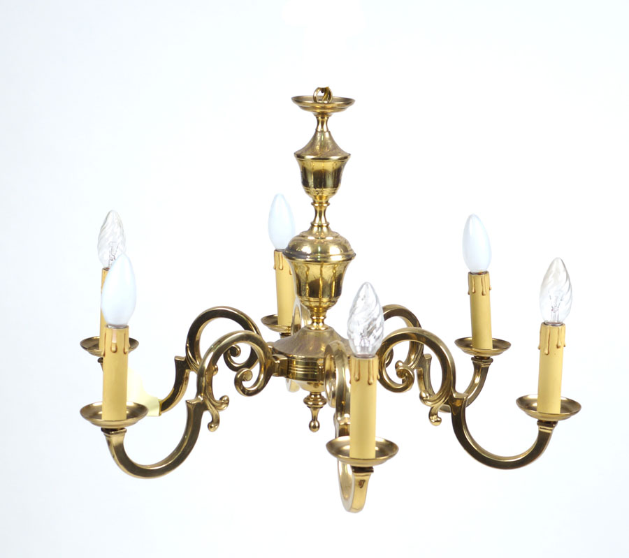 LAMPADARIO A SEI BRACCIA IN OTTONE XX Sec. A SIX BRANCHED BRASS CANDELABRA 20th century Electrified and functional 40x60 cm.