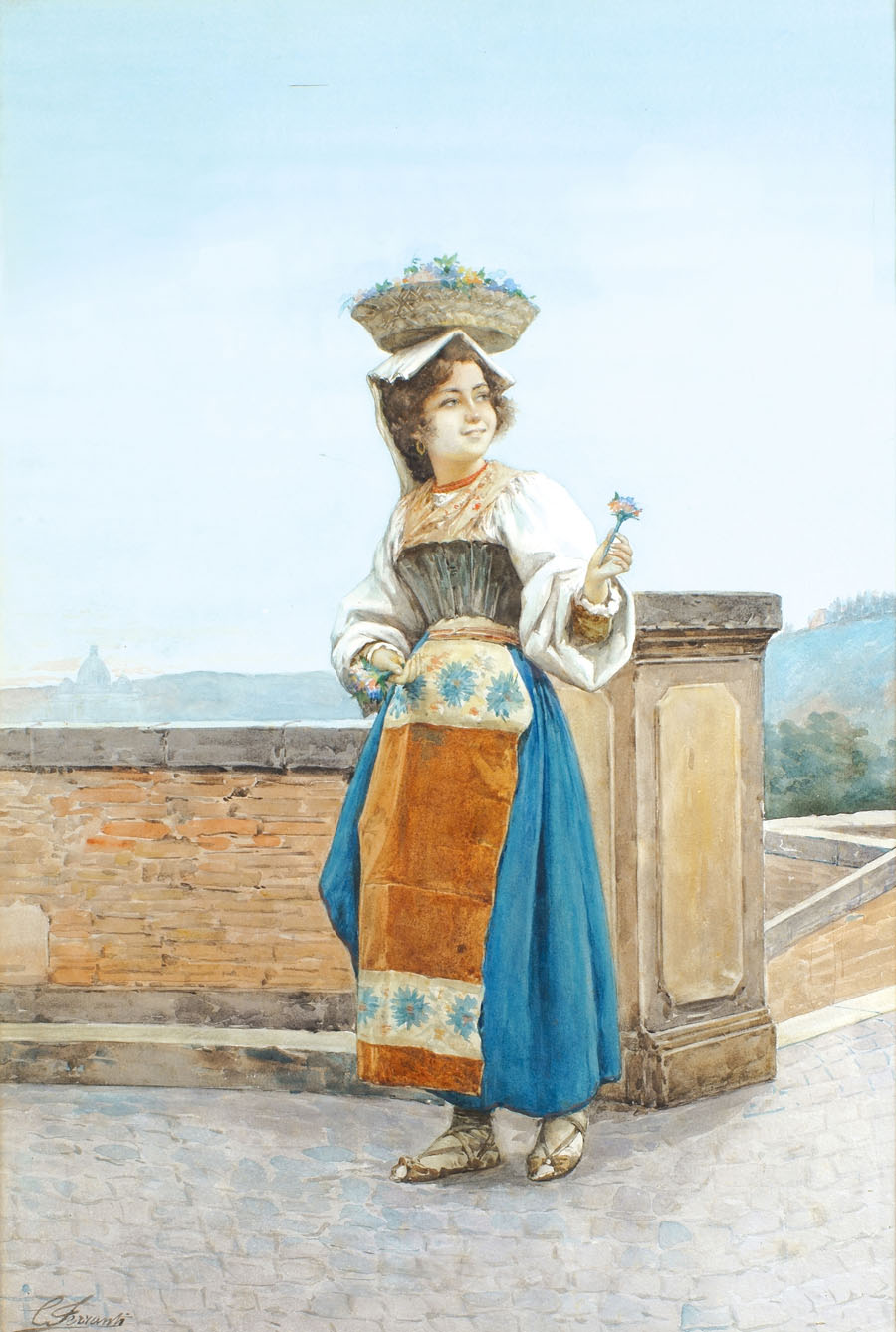 CARLO FERRANTI Italia, 1840-1908 "Popolana con cesto di fiori", acquarello,...