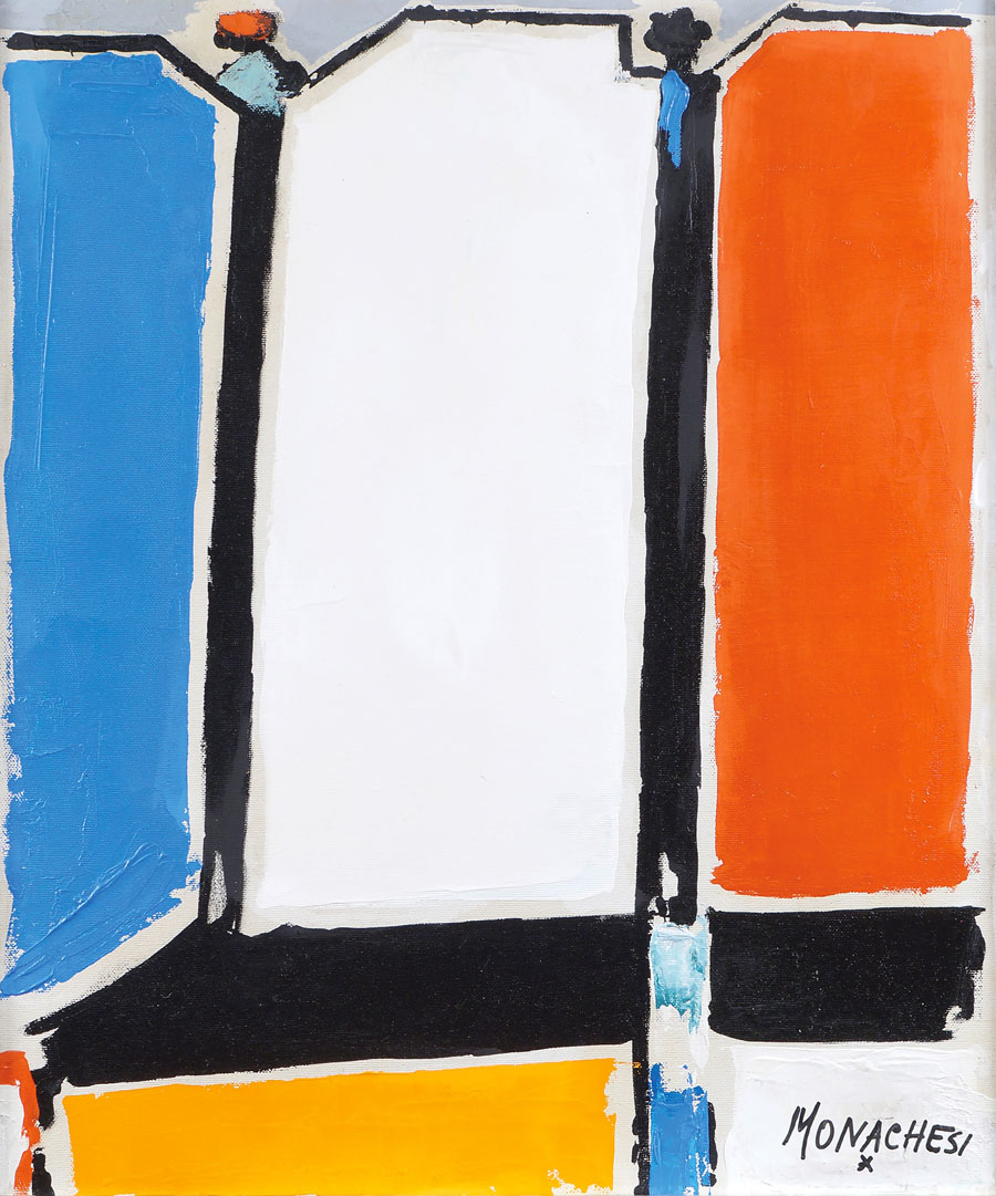 SANTE MONACHESI Macerata 1910 - Roma 1991 "Muri ciechi", olio su tela, firmato in basso a destra e sul retro per autentica, entro cornice. Opera archiviata presso l'Archivio Sante Monachesi, Roma, in attesa del numero di archivio SANTE MONACHESI Macerata 1910 - Rome 1991 Oil on canvas, signed (lower right and on the reverse) 60x50 cm.