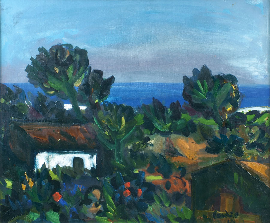 NINO CORDIO Santa Ninfa 1937 - Roma 2000 "Paesaggio mediterraneo", olio su tela, firmato in basso a destra, entro cornice NINO CORDIO Santa Ninfa 1937 - Rome 2000 "Mediterranean landscape", oil on canvas, signed (lower right) and framed 50x60 cm.