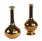 DUE BOTTIGLIE IN CERAMICA DORATA Gatti, Faenza XX Sec. A COUPLE OF FAENZA GILT CERAMIC BOTTLES Gatti, Faenza 20th century different dimensions h. 29 cm.
