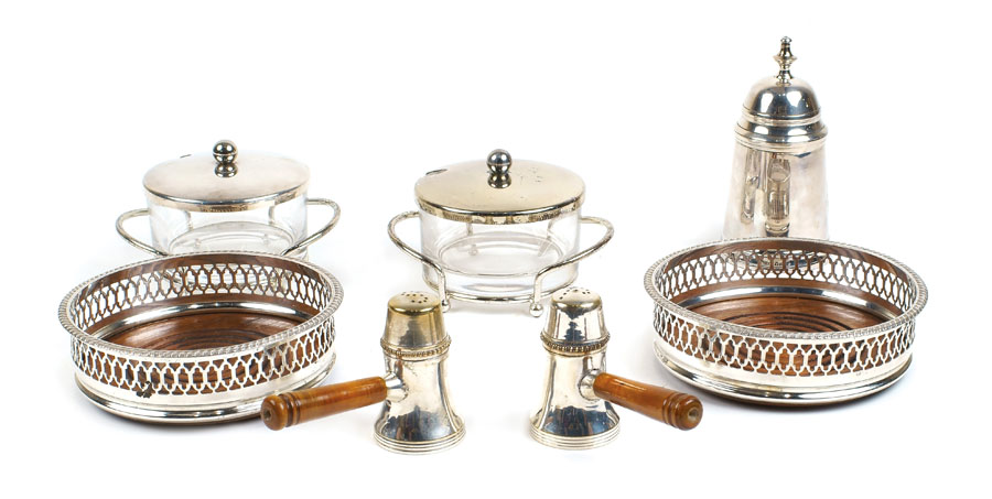 SETTE OGGETTI IN METALLO ARGENTATO XX Sec. fogge e misure diverse A MIXED...