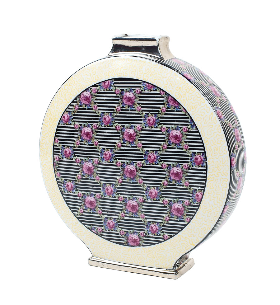 LIMOGES, VASO A FIASCA IN PORCELLANA Francia, inizio XX Sec. firmato F. Quinque alla base, dipinto in policromia e decorato a motivi floreali A LIMOGES PORCELAIN FLASK VASE France, early 20th century Mark of F. Quinque on the base h. 26 cm.