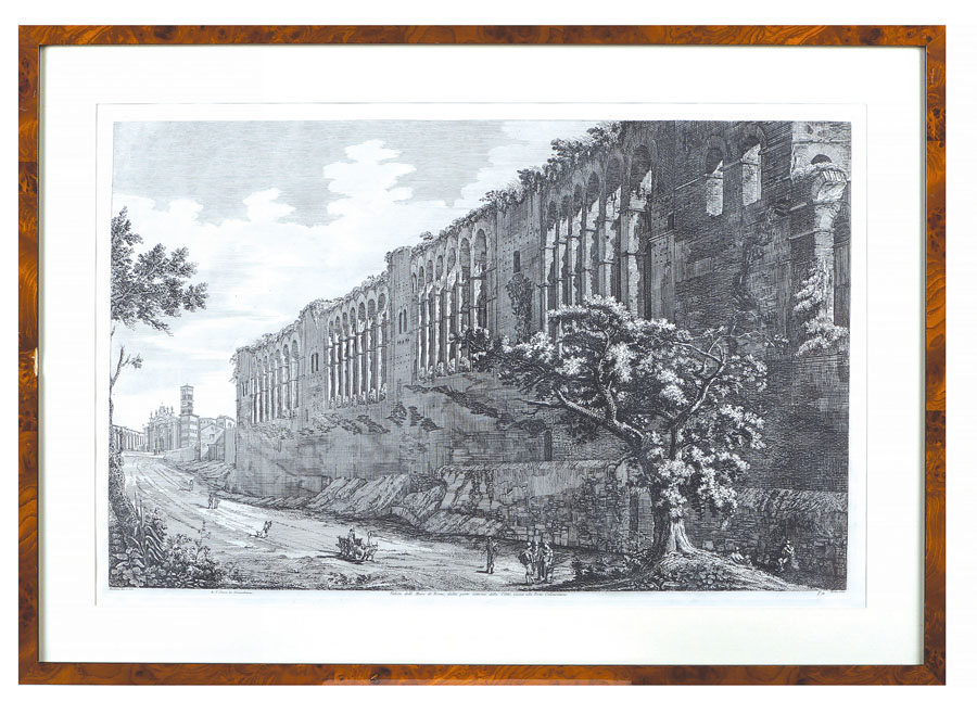 LUIGI ROSSINI Ravenna 1790 - 1857 "Le Mura di Roma e Santa Croce in Gerusalemme", incisione entro cornice LUIGI ROSSINI Ravenna 1790 - 1857 "The walls of Rome" and "Santa Croce in Jerusalem", framed etchings 44x67 cm.