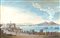 SCUOLA NAPOLETANA XX Sec. "Il golfo di Napoli con il Vesuvio nell'800" gouache, entro cornice NEAPOLITAN SCHOOL 20th century "View on the Gulf of Naples in the 19th century", framed gouache 56x84 cm.