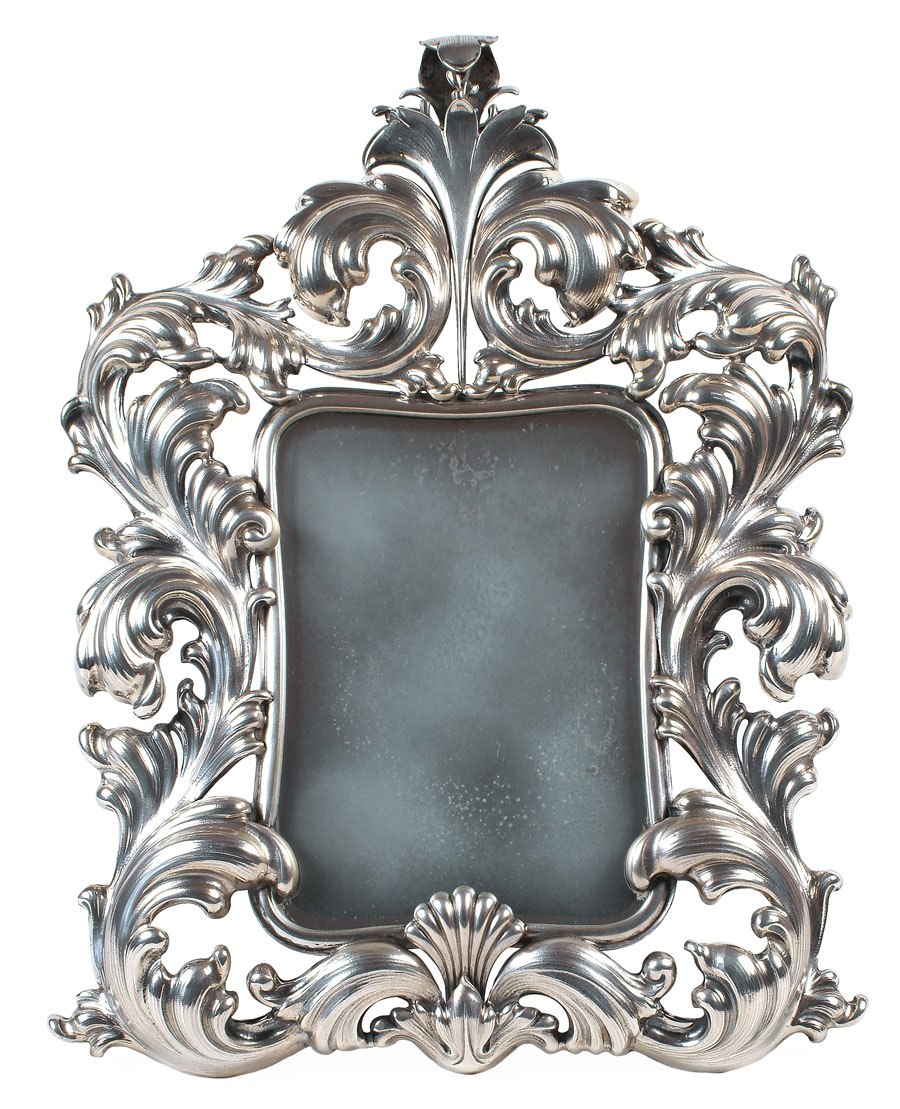 SPECCHIERA DA TAVOLO IN ARGENTO Milano, bollo Fascio, anni 30-40 cornice traforata ed incisa a motivi vegetali e di volute, cm. 45 AN ITALIAN SILVER TABLE MIRROR Milan, 1930/40s Fascist mark peso lordo 2160 gr.