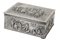 SCATOLA RETTANGOLARE IN ARGENTO E LEGNO XIX Sec. sbalzata e decorata a motivi di personaggi in costume A SILVER AND WOODEN CASE 19th century Decorated with disguised figures 4,5x11,5x9 cm.