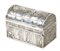 SCATOLA A BAULETTO IN ARGENTO manifattura europea, XIX Sec. sbalzata ed...