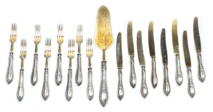 SERVIZIO DI 17 POSATE DA DOLCE CON MANICI IN ARGENTO Italia, inizio XX Sec....