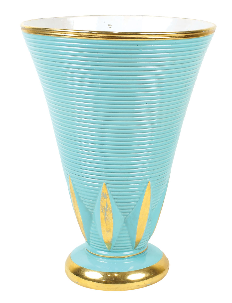 LAMPADA VINTAGE IN CERAMICA Italia, XX Sec. dipinta nella tonalità del turchese e parzialmente dorata AN ITALIAN CERAMIC VINTAGE LAMP 20th century Partially gilt h. 41,5 cm.