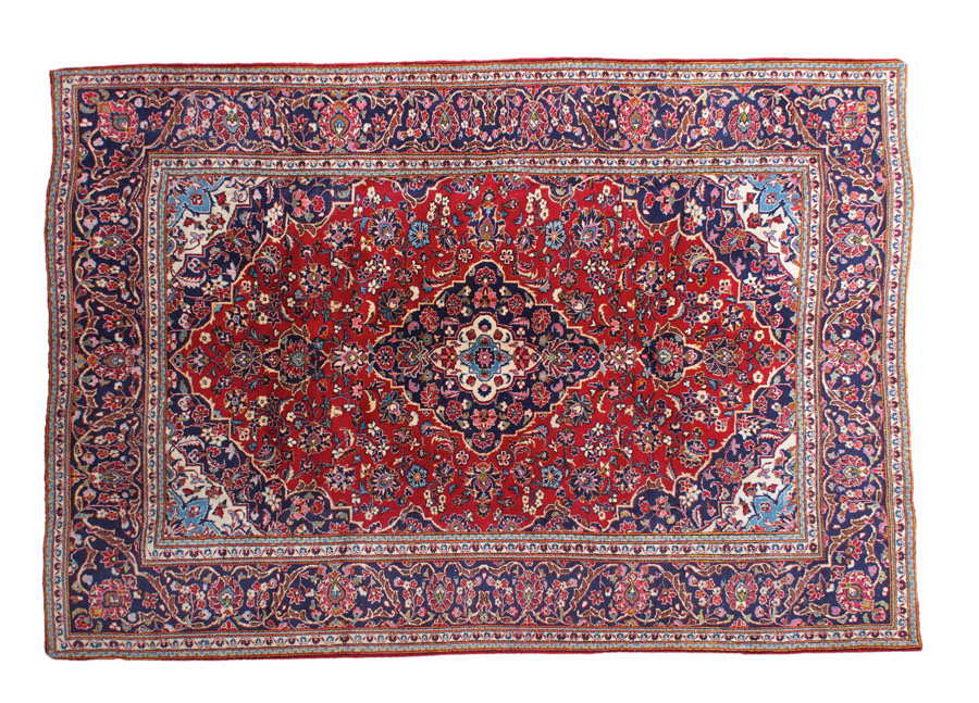 TAPPETO KASHAN IN LANA SU TRAMA IN COTONE Persia A WOOL AND COTTON KASHAN CARPET Persia With floral decorations 343x246 cm.