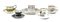 CINQUE TAZZE CON PIATTINO IN PORCELLANA POLICROMA XIX-XX Sec. manifatture e...