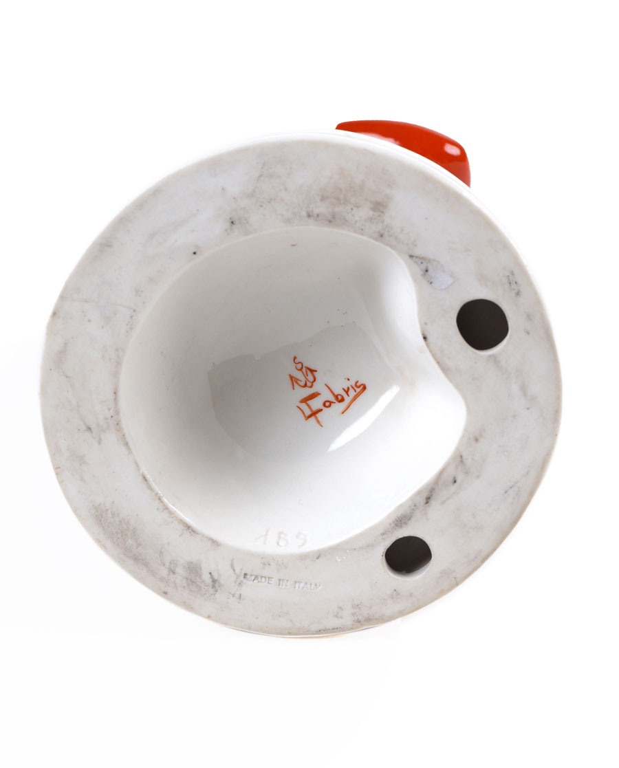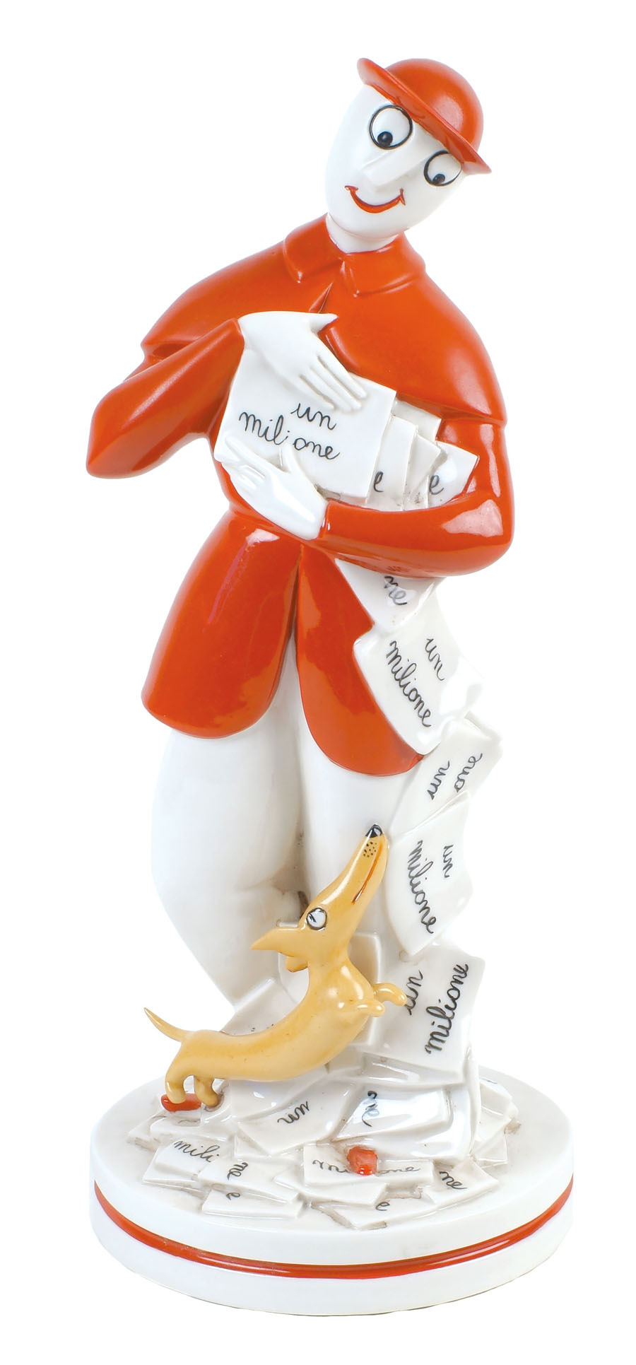 LUIGI FABRIS Bassano del Grappa 1883 - 1952 "Il Signor Bonaventura", figura in porcellana policroma poggiante su base circolare, marchio sotto la base LUIGI FABRIS Bassano del Grappo 1883 - Bassano 1952 "Mr. Bonaventura", porcelain figure on circular base, mark on the base 32,5x13 cm.