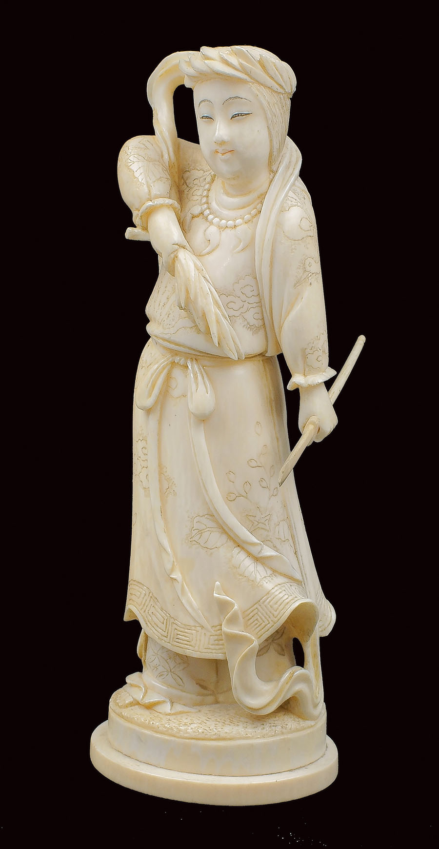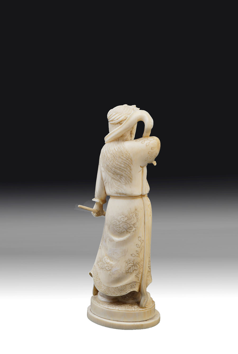SCULTURA IN AVORIO manifattura orientale del XIX Sec. raffigurante una figura femminile con spada AN IVORY SCULPTURE oriental manufacture, 19th century Modelled as a feminine figure with sword