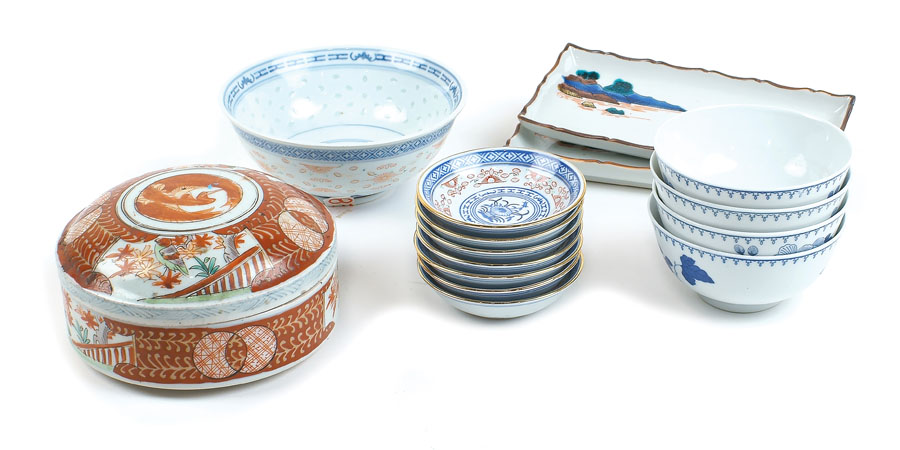 QUINDICI OGGETTI IN PORCELLANA POLICROMA Cina, manifattura recente fogge e...