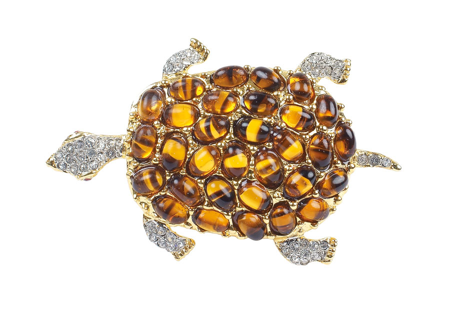 KENNETH J. LANE, SPILLA TARTARUGA firmata in metallo dorato, strass e pietre colorate A METAL-GILT AND RHINESTONE KENNETH J. LANE TURTEL BROOCH Mark of Kenneth J. Lane