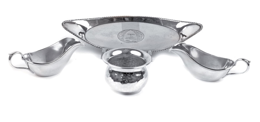 QUATTRO OGGGETTI IN METALLO ARGENTATO fogge e manifatture diverse A SILVER LOT (4) Different manufactures
