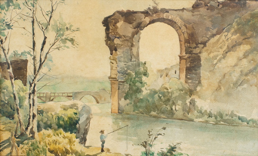 Lot 620 | SCUOLA ITALIANA inizio XX Sec. "Ponte di Augusto a Narni", acquarello su...
