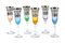 SEI FLUTES IN CRISTALLO COLORATO XX Sec. incisi a motivi di ghirlande di fiori e decorati in argento A SET OF SIX COLORED CRYSTAL GLASSES 20th century With silver applications h. 23 cm.