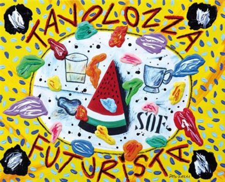 BRUNO DONZELLI Napoli 12/04/1941 Tavolozza futurista acrilici e collage su...