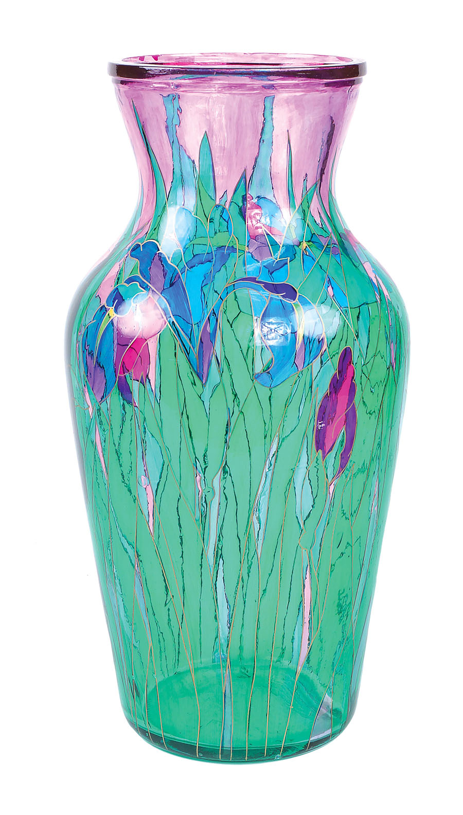 VASO IN VETRO POLICROMO SOFFIATO Murano, XX Sec. decorato a motivi floreali di gusto Liberty A MURANO GLASS VASE 20th century Liberty style painted h. 46 cm.