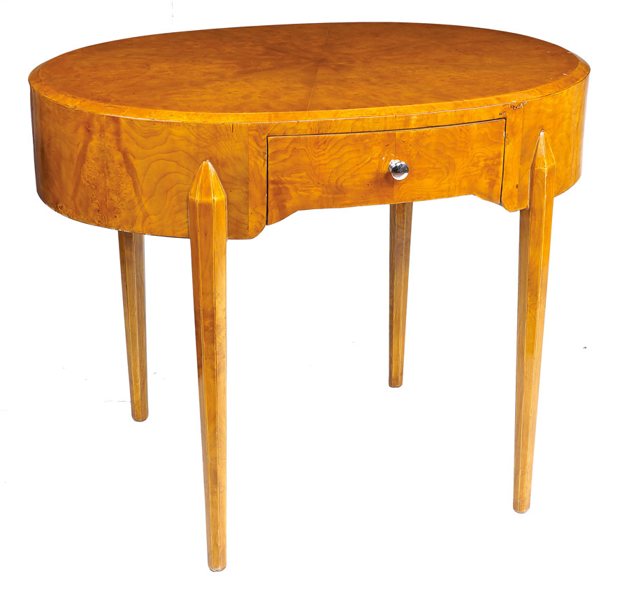 SCRITTOIO IN RADICA XX Sec. piano ovale con un cassetto sottostante, poggiante su gambe di forma ottagonale A ROOT WOOD BUREAU 20th century Oval shaped top with one drawer 80x101x72 cm.