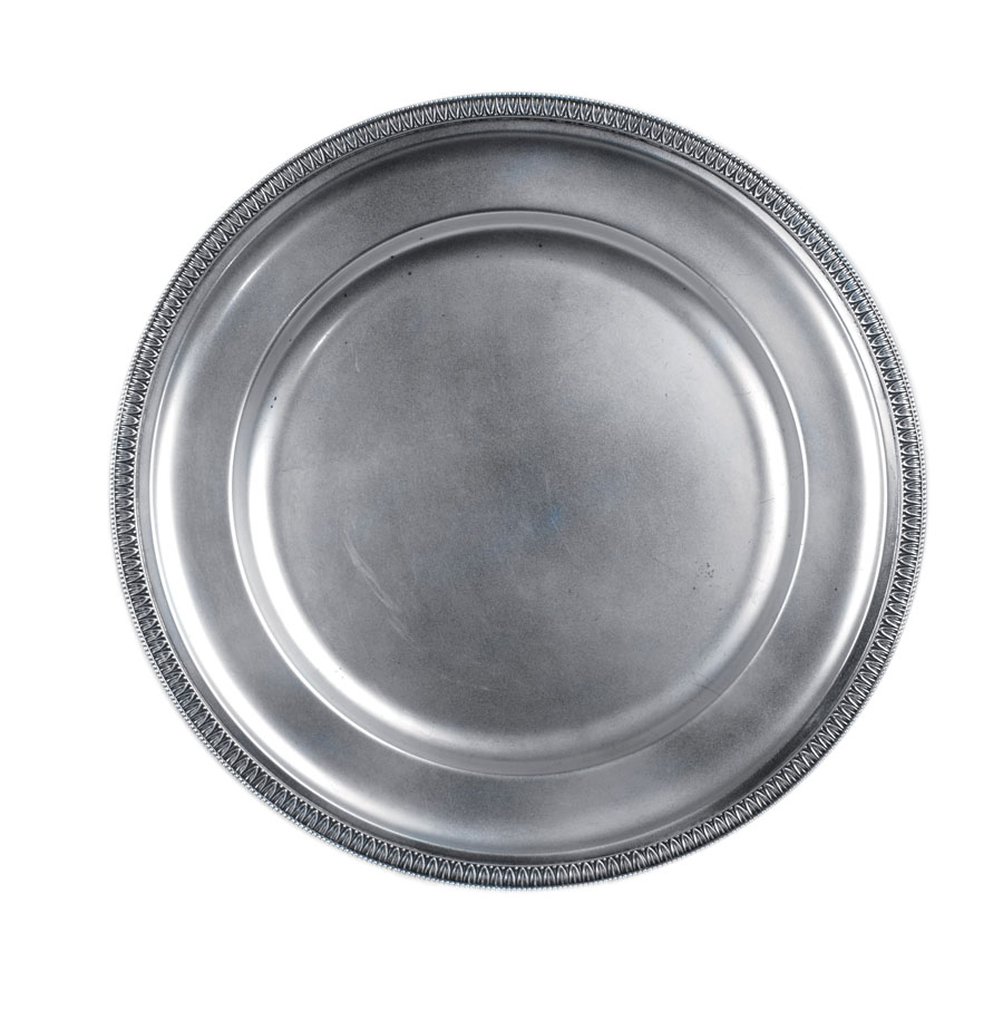 VASSOIO CIRCOLARE IN ARGENTO Italia, metà XX Sec. con profilo decorato a motivo di palmette, d. cm.32 AN ITALIAN SILVER TRAY mid-20th century Palmette decorations peso 570 gr.