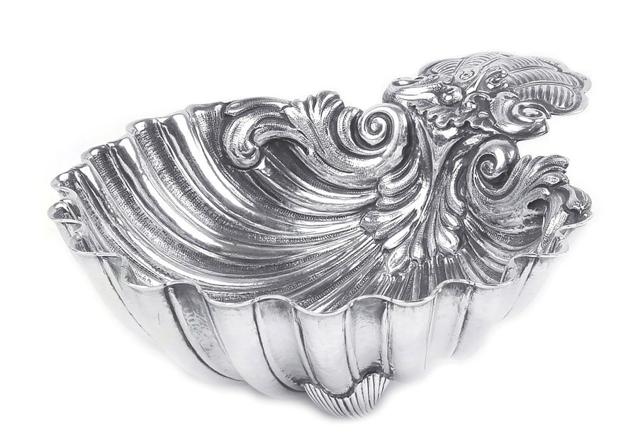 CONCHIGLIA BATTESIMALE IN ARGENTO TITOLO 925 Italia, metà XX Sec. cm.6x16x13,5 AN ITALIAN SILVER BAPTISMAL SHELL mid-20th century Marked 925 peso 183 gr.