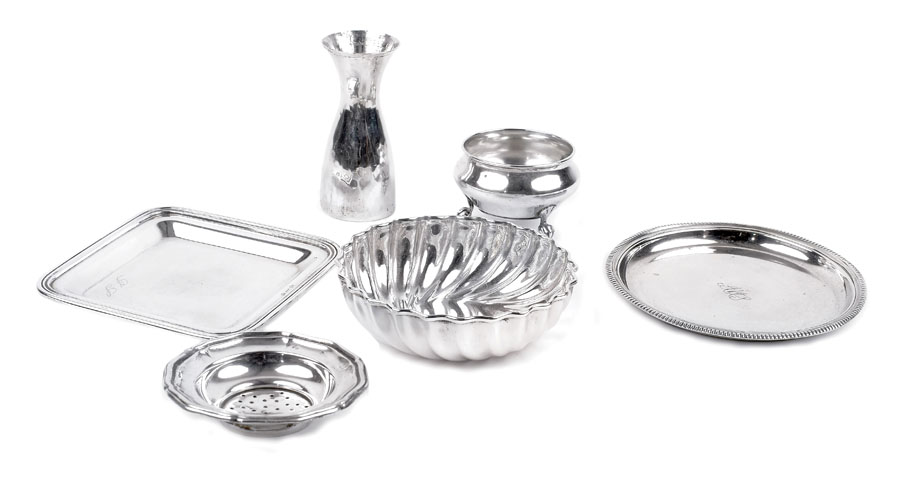 SEI OGGETTI IN ARGENTO Italia, XX Sec. fogge e manifatture diverse A SILVER...