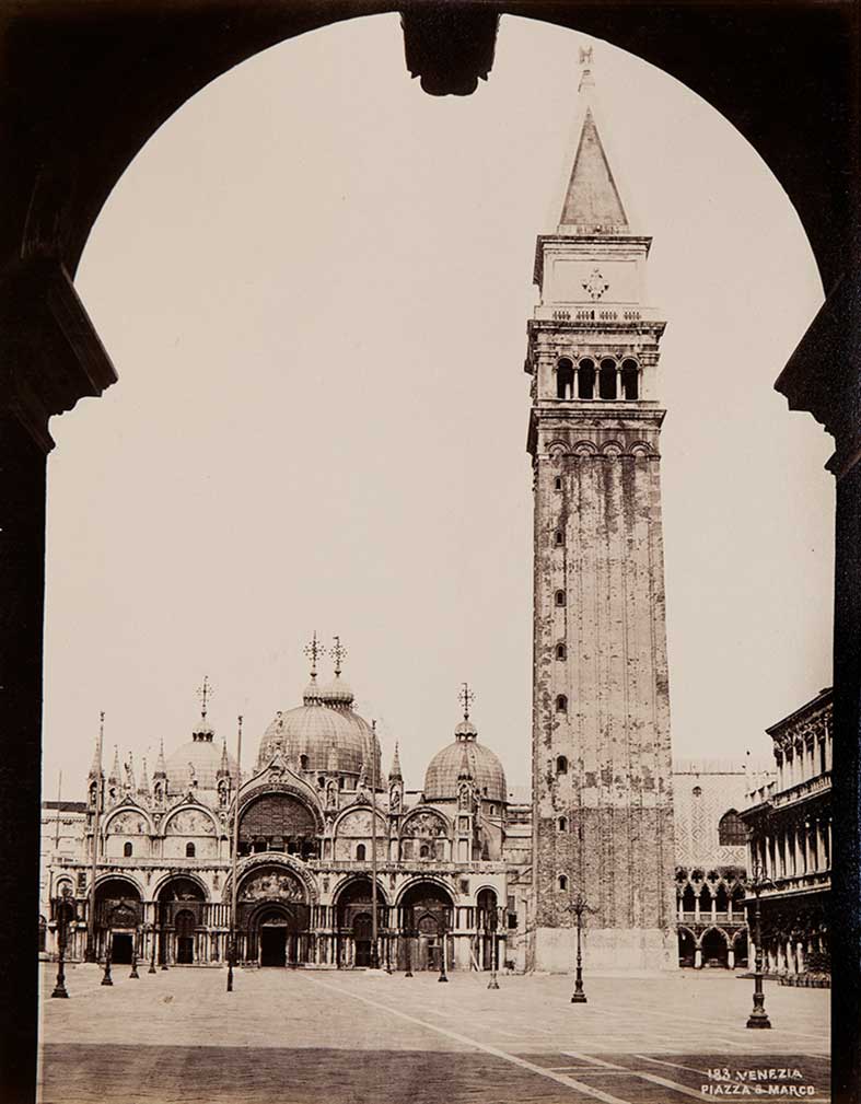 Italia Album fotografico della fine dell’ottocento, (1870 - 80 c.ca), mm. 285 x 345 formato chiuso, con 83 fotografie originali all'albumina mm.19 x 25, incollate su supporto in cartone, sporadiche fioriture sparse, legatura originale in zigrino rosso, al piatto anteriore decori di filetti e rotelle di motivi stilizzati, al centro del campo la scritta “Italia” in oro, qualche macchia. Album affascinante composto di 83 albumine delle principali località italiane scattate da autori quali D'Alessandri, Brogi, Alinari, Sommer, Salviati e altri da identificare. Le città raffigurate sono: Roma (29), Firenze (19), Pisa (4), Siena (1), Pistoia (2), Prato (1), Arezzo (1), Verona (3), Venezia (6) Milano (7) Pavia (8) e alcune sono di dipinti celebri.