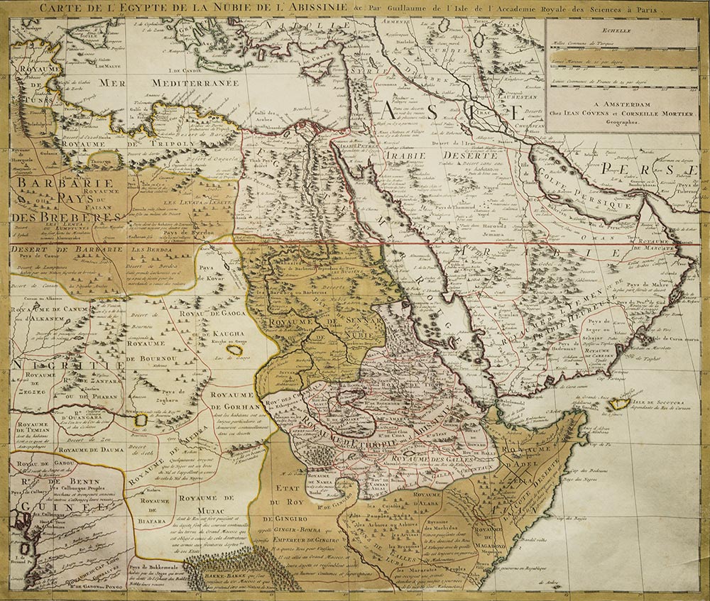 Ortelius, Abraham Europam, sive Celticam Veterem Incisione su rame, Anversa 1595, con 3 cartigli, uno dei quali in alto a sinistra con titolo, colorata, brunita, difetti, mm. 423 x 555 il foglio, in cornice moderna, in legno. § Egitto - Jean Covens, & Corneille Mortier. Carte de l'Egypte, de la Nubie, de l'Abissinie & c. Par Guillaume de l'Isle de l'Academie Royale des Sciences a Paris. Incisione in rame, Parigi, c.ca 1730, confini colorati da mano coeva, mm. 520 x 600. Bella carta dell’Europa basata sulle fonti classiche di Sallustio, Plinio, Erodoto, Strabone. La mappa fu pubblicata nel 1595 ed apparve nel Theatrum Orbis Terrarum. Van den Broecke 189.Carta geografica basata sulla famosa carta del 1707 del Guillaume de L'Isle.