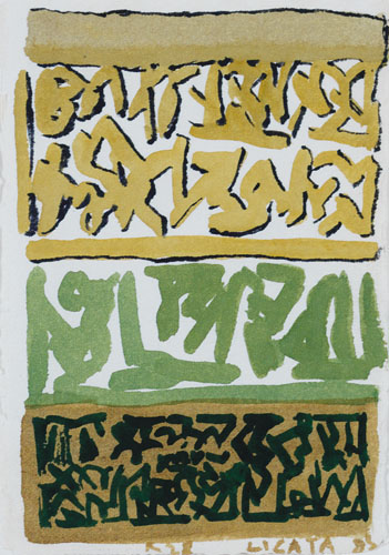 RICCARDO LICATA Torino 20/12/1929 Senza titolo, 1983 tecnica mista su carta cm. 13,5x9, firma in basso a destra, anno in basso al centro, pubblicato sul catalogo "Licata e i suoi diari", testi di Giovanni Granzotto e Dino Marangon, Stamperia dell'Arancio, 2005, pagina 27.