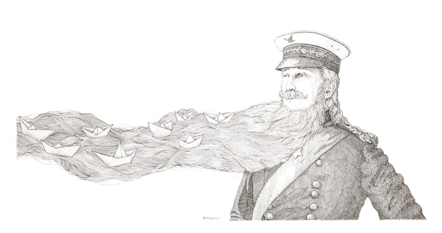 Antonio Bonanno "L'ammiragio Perronet", 2014 china su cartoncino, 38 x 21 cm Illustrazione origianale per "Mustacchi" edita da Ed. Logos nel 2014. Firmata.