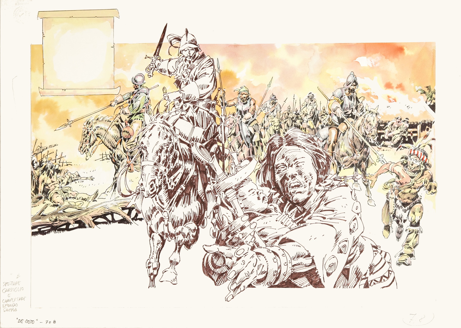 Renzo Calegari "Hernando de Soto" china e acquerello su cartoncino, 51 x 36,5 cm Illustrazione originale realizzata da Calegari per "Diari illustrati senza eroi" edito da Grifo Edizioni nel 2008.