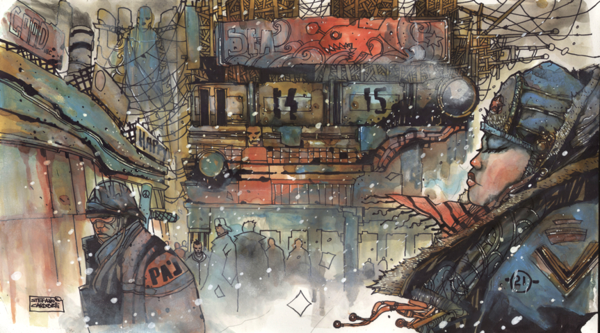 Stefano Cardoselli "Winter", n.d. china e acquerello su cartoncino, 43 x 24 cm Artista di origini toscane, Cardoselli è al centro della scena underground americana da più di dieci anni collaborando con moltissime case editrici d'oltre oceano tra cui Heavy Metal Magazine, Antarctic Press e Dark Slingers Comics. Dallo stile horror-pulp allo splatter Cardoselli riesce sempre a dare alle sue opere un tocco di oniricità. Firmata.