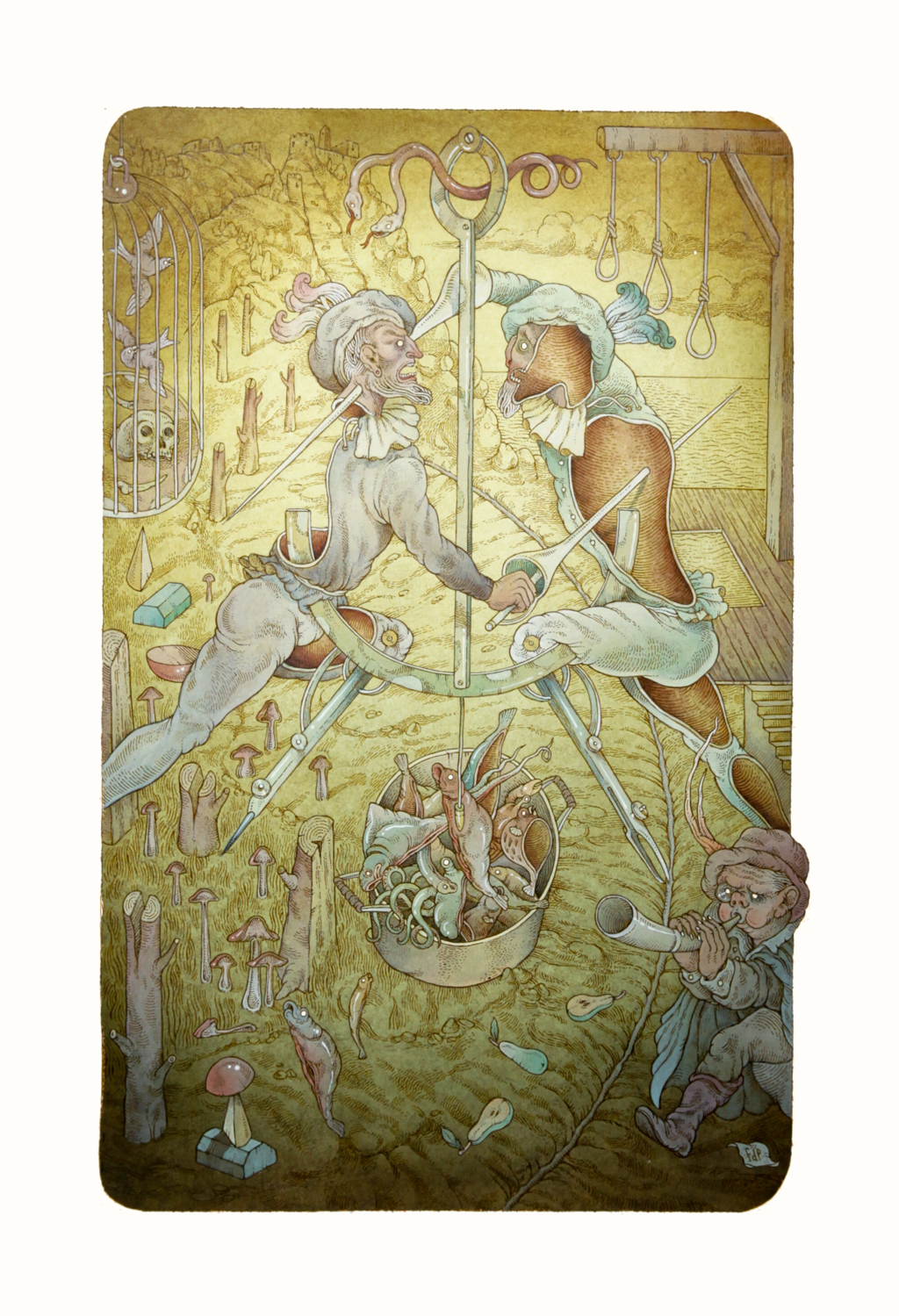 Federico Della Putta "Il visconte dimezzato", 2012 acquerello, acrilici e china su cartoncino, 35 x 50 cm Illustrazione originale realizzata da Della Putta per il porfolio "Appunti di Epica", contenente tredici composizioni ispirate a temi “fantastico-cavallereschi”, edita da Spazio Papel nel 2012. Firmata.