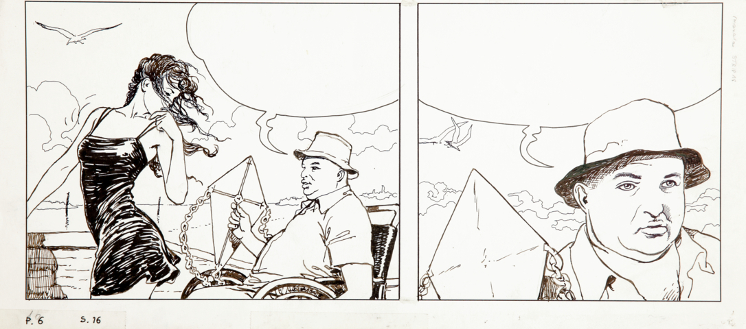 Milo Manara "Tre ragazze nella rete", 2000 matita e china su cartoncino, 50 x 22 cm Striscia originale realizzata da Manara per "Tre ragazze nella rete" edita da Mondadori nel 2000. Il maestro dell'eros si diverte ad immaginare come le nuove tecnologie possano influenzare la vita di giovani e avvenenti fanciulle un po' spregiudicate.
