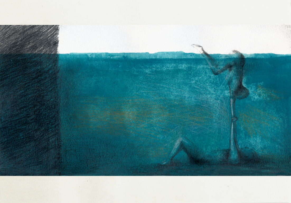Anna Obon "Les mains dans les mains", 2014 carboncino, tempera e acquerello su cartoncino, 29,5 x 21 cm Illustrazione originale realizzata dalla Obon per il volume "Le pont Mirabeau" edito dalla casa edtrice francese Ed. Bulles de Savon nel 2014. L'illustrartice spagnola riesce, con una sorprendente tecnica mista, a rendere l'evanescenza e la poesia degli scritti del famoso Apollinaire, questo suo tratto le è valso la fama internazionale e diversi riconoscimenti soprattutto in Francia e Spagna. Titolata al retro. Firmata e datata.
